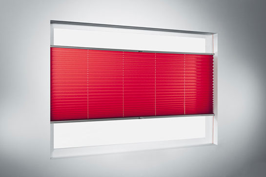 Durch einen Selbstbremsmechanismus können die Plisseeanlagen in beliebiger Höhe positioniert werden. Außerdem kann es auf verschiedenen Höhen mit einem Bedienstab gesteuert werden.
